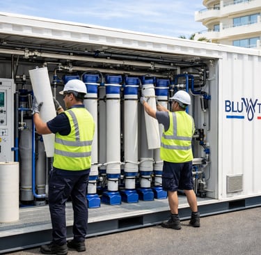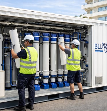 ▪Le coût de maintenance d’un système de dessalement est‐il élevé ? Les unités de dessalement BLUWTEC sont des solutions autonomes, intégrées et compactes, occupant un espace limité. L’installation et la maintenance sont simples et économiques.