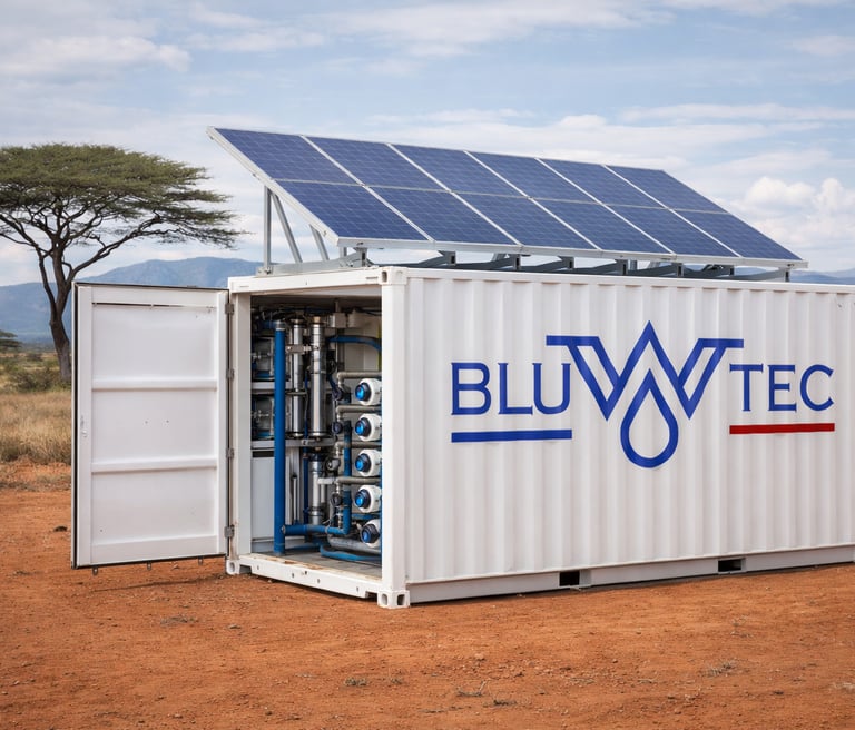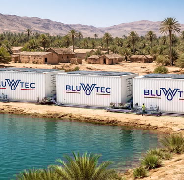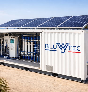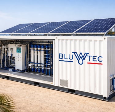 Les unités de dessalement BLUWTEC transforment l’eau saumâtre ou l’eau de mer en eau potable ou domestique. Pour les zones isolées et éloignées disposant de ressources en eau limitées, elles garantissent un approvisionnement stable en eau douce.